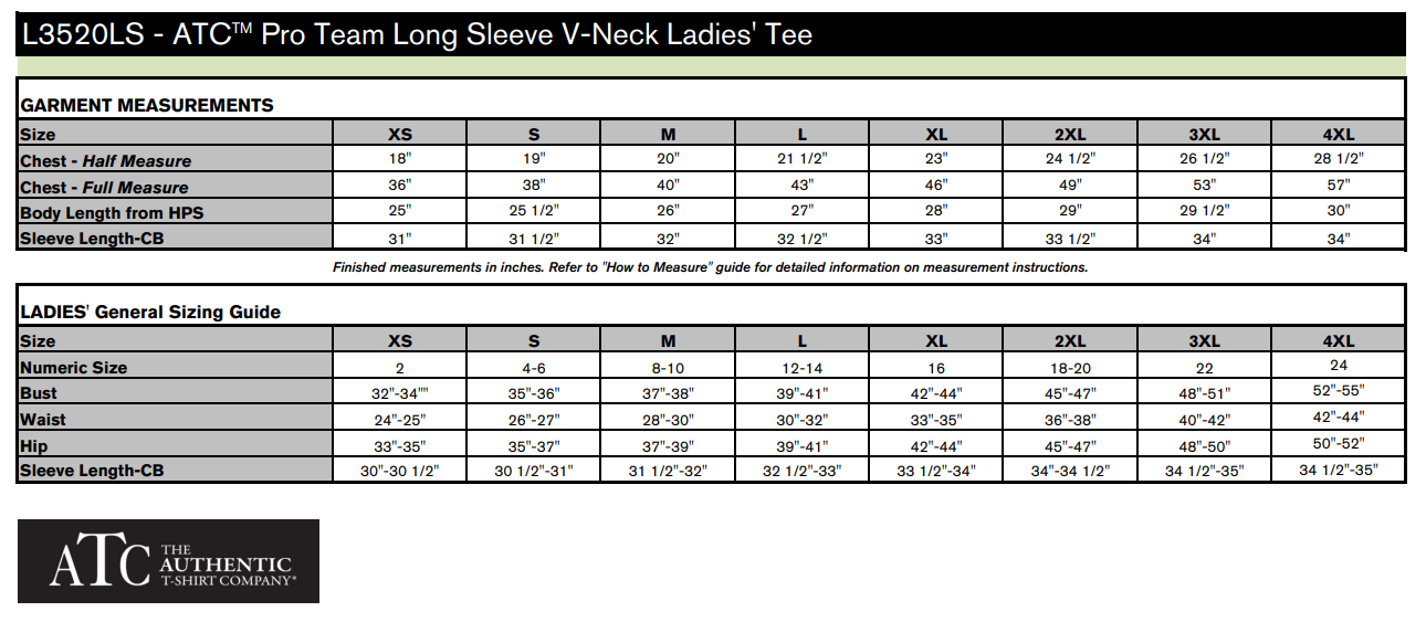 ATC™ PRO TEAM LONG SLEEVE V-NECK LADIES' TEE. L3520LS